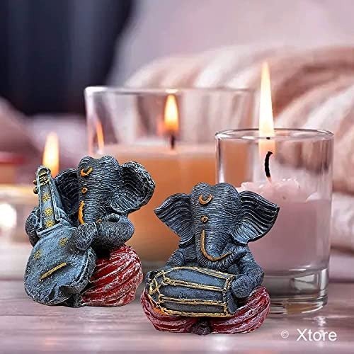 Xtore Resin Musical Ganesha Pair for Home Decor | Brings Prosperity – (Grey & Red, Pack of 2) – Fast Shipping to USA & Canada