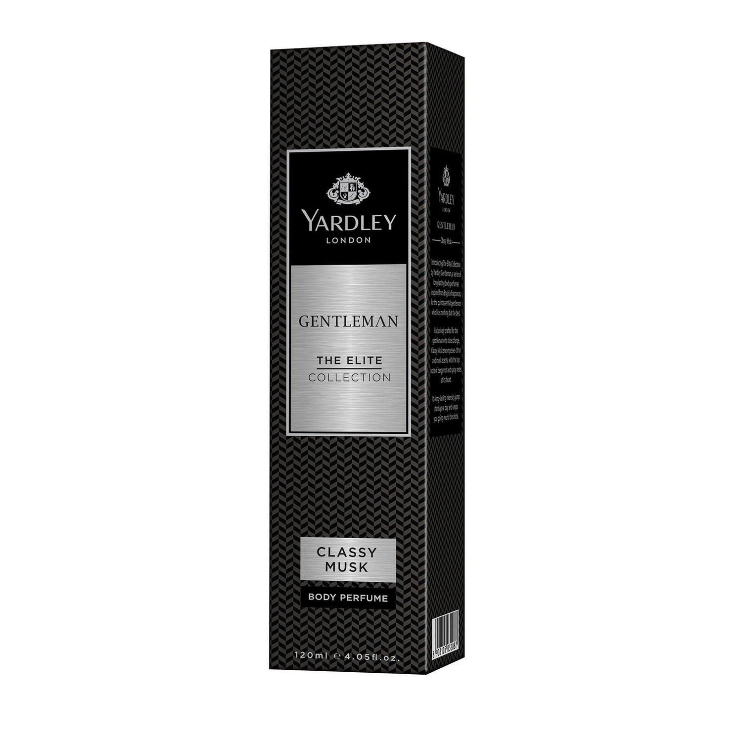 Presenting Yardley London Gentleman Classy Musk No Gas Deodorant Body Spray Perfume-a true embodiment of refinement and sophistication. Crafted exclusively for the modern gentleman who radiates confidence and assertiveness, this fragrance redefines luxury with its elevated concentration of perfume, derived from rare and exotic ingredients, and exceptional longevity.