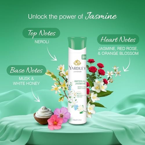 Immerse yourself in the captivating allure of night-blooming jasmine with Yardley London?s Imperial Jasmine Perfumed Deo for Women. Revered as the ?Queen of the Night,? jasmine blossoms are meticulously harvested after dusk to preserve their rich, intoxicating fragrance-unleashed only when twilight descends. Imperial Jasmine is a sumptuous and opulent scent, artfully marrying the invigorating freshness of florals with the warm, sensual undertones of musk and amber. This elegant fragrance lingers delicately, making it an ideal choice for special occasions and evening gatherings.