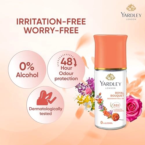 Indulge in the enduring allure of floral sophistication with Yardley Royal Bouquet Deodorant Roll-On for Women. This refined roll-on is meticulously crafted to captivate your senses with its gentle, elegant bouquet, transforming each application into a moment of pure delight. Beyond its enchanting fragrance, Yardley?s Royal Bouquet is thoughtfully formulated to care for your skin. Infused with natural licorice extracts and amino peptides, it works to subtly brighten the skin and diminish the appearance of wrinkles, leaving your underarms feeling smoother and more radiant over time.