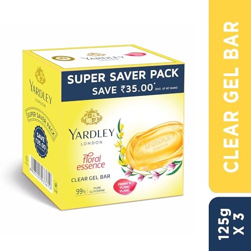Yardley London Yardley Clear Gel Bar Peony & Ylang Ylang – With 99% Pure Glycerin And Natural Floral Oils 125Gx3 – Fast Shipping to USA & Canada