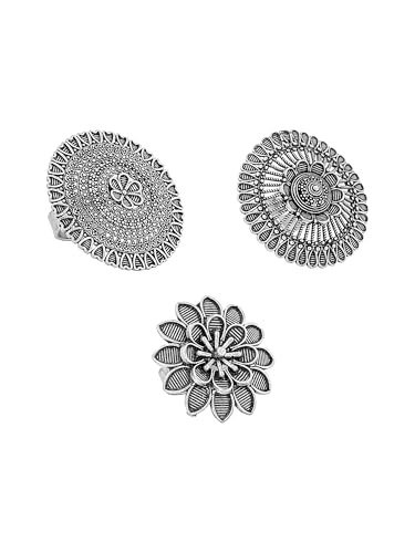 - Adjustable Silver Oxidized Traditional Combo of 3 Rings, showcasing exquisite craftsmanship. These rings can be paired effortlessly with any of your favorite jewelry collections. Our product makes an ideal gift for Valentine’s Day, anniversaries, or birthdays for your girlfriend or wife.