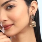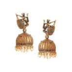 Beautiful oxidized gold plated jhumka earrings.