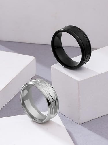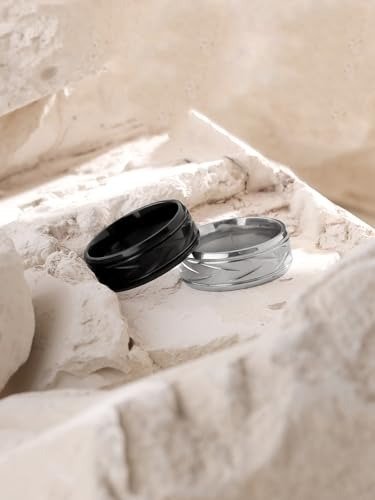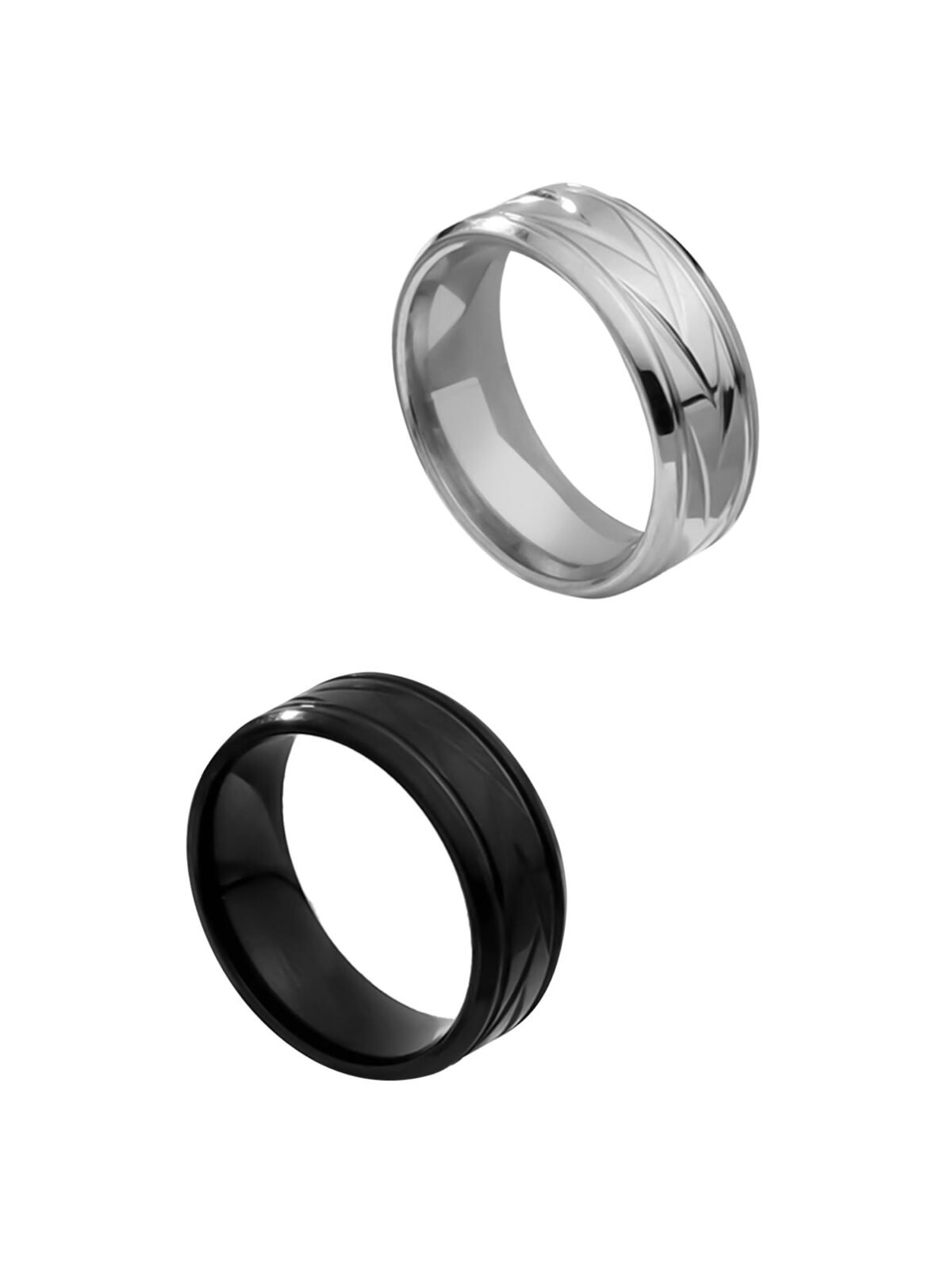 - IDEAL ACCESSORY: Elevate your daily style with these stainless steel silver and black band rings from Yellow Chimes. They are robust enough for any occasion and fashionable enough for all settings! This set of silver and black band rings features a distinctive design, making them suitable for both men and boys.
