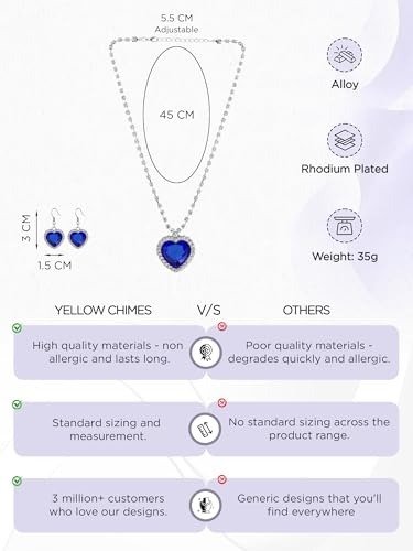 6 reviews for Yellow Chimes Valentine Special Mesmerizing Titanic Blue Ocean Heart Austrian Crystal Pendent Set by Yellow Chimes Silver Plated Jewellery Set for Women (Silver, Blue) (YCFJPDER-304HRT-BNDL) – Fast Shipping to USA & Canada