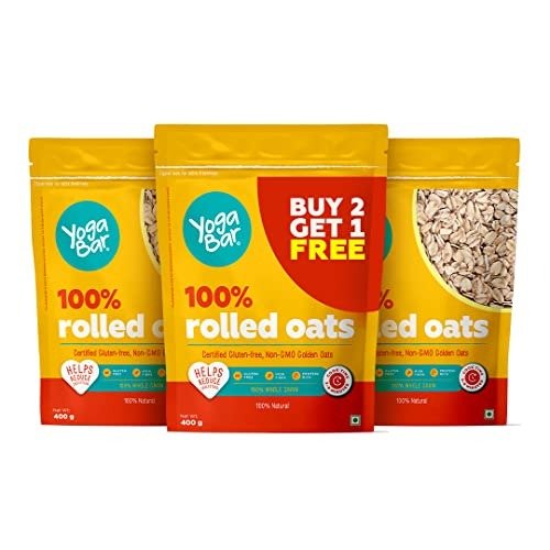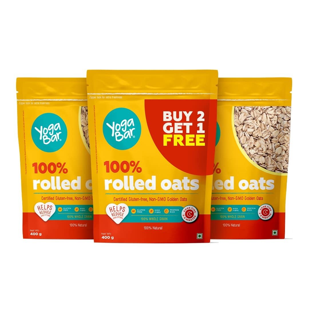 Yogabar 100% Rolled Oats Combo | (Buy 2 Get 1 Free) | Premium Golden Rolled Oats | 400g Each | Helps Weight Loss | Gluten Free with High Fibre – Fast Shipping to USA & Canada