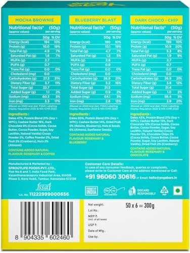6 reviews for Yogabar 10g Protein Bars Variety Pack of 6 (2x Blueberry Blast, 2x Mocha Brownie, 2x Dark Chocolate Chip) + 7x 4g Protein Minis (Free) | Zero Added Sugar | Low Net Carbs | Whey, Peanut & Soy Protein Blend | Healthy Snack Bars – Fast Shipping to USA & Canada