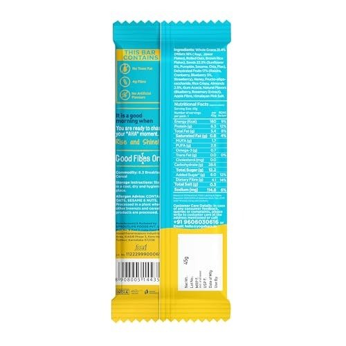 Yogabar Blueberry Pie Breakfast Protein Bar with Oats, Millets, Quinoa & Almond | 7g Protein & 6.5 g Fiber, 50g – Fast Shipping to USA & Canada