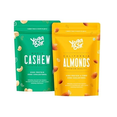 Yogabar California Almonds 500g Value Pack| 100% Premium California Dried Almonds |Badam Giri Nuts & Dry Fruits| Rich in Fiber, vitamin E, Magnesium, Calcium & Boost Immunity| Healthy Badami Snacks Yogabar Cashews 500g| 100% Natural & Premium Whole Organic Cashew Nuts| King Size Crunchy Kaju Nuts| Premium Nuts & Dry Fruits| Rich in Fibre, Vitamin E, K, B6 & Boosts Immunity| Healthy Snacks