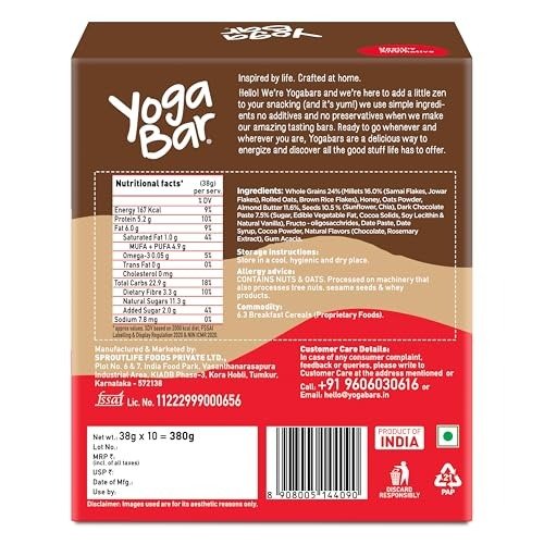 6 reviews for Yogabar Energy Bars Chocolate Chunk | Multigrain Daily Protein Snack | High Energy & Nutrition Bars | 8g Protein & 7g Fibre Protein bars | Pack of 10 x 35g Energy Bars | No Preservatives – Fast Shipping to USA & Canada