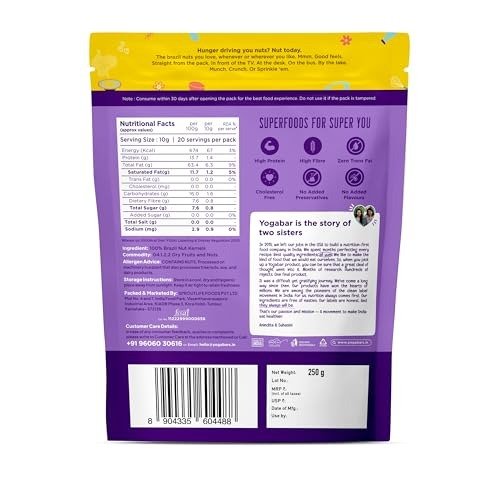 Yogabar Premium Brazil Nuts 250g, High Protein and Fibre, Zero Cholesterol, Ethically Sourced – Fast Shipping to USA & Canada
