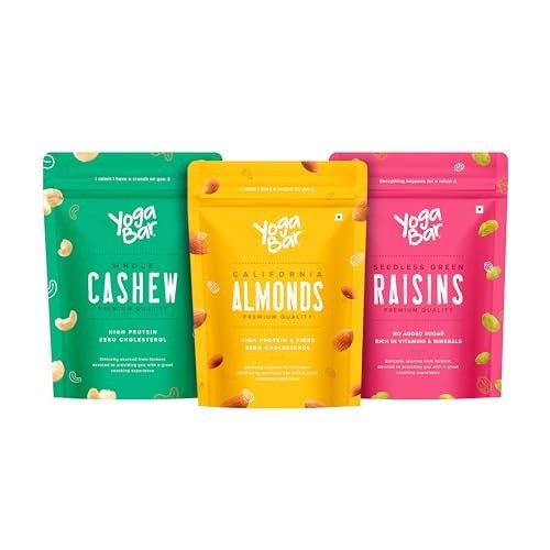 Yogabar Premium Dry Fruits Combo 1.5kg – Whole Cashews, Californian Almonds & Indian Raisins – Consistent Quality throughout the year (3 x 500g) – Fast Shipping to USA & Canada