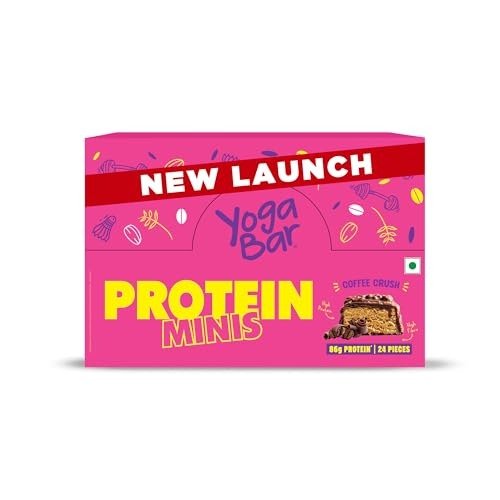Yogabar Protein Minis, 4g Protein Bar (24 Bars, Coffee Crush) | Dark Chocolate Bar with no Trans Fat | Healthy Snacks for Kids & Adults | Goodness of Peanuts | Rich in Protein & Fiber – Fast Shipping to USA & Canada
