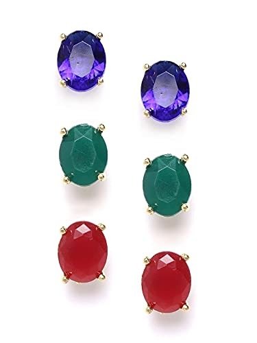 YouBella American Diamond Jewellery Multi-Color Interchangeable Triangular Shaped Earrings for Girls and Women : Best Rakhi Gift Jewellery – Fast Shipping to USA & Canada