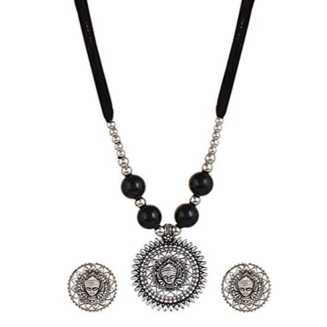 YouBella Fashion Jewellery Antique Oxidised Tribal Cotton Thread Jewellery Necklace Earring Set for Women & Girls.(Valentine Gift Special). (Black) – Fast Shipping to USA & Canada