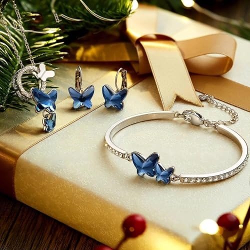 YouBella Gifts Stylish Latest Fashion Silver Plated Crystal Butterfly Jwell Necklace Chain Pendant Bracelet and Earrings Combo Jewellery Set for Girls and Women (Blue) (YBNK_50619) – Fast Shipping to USA & Canada