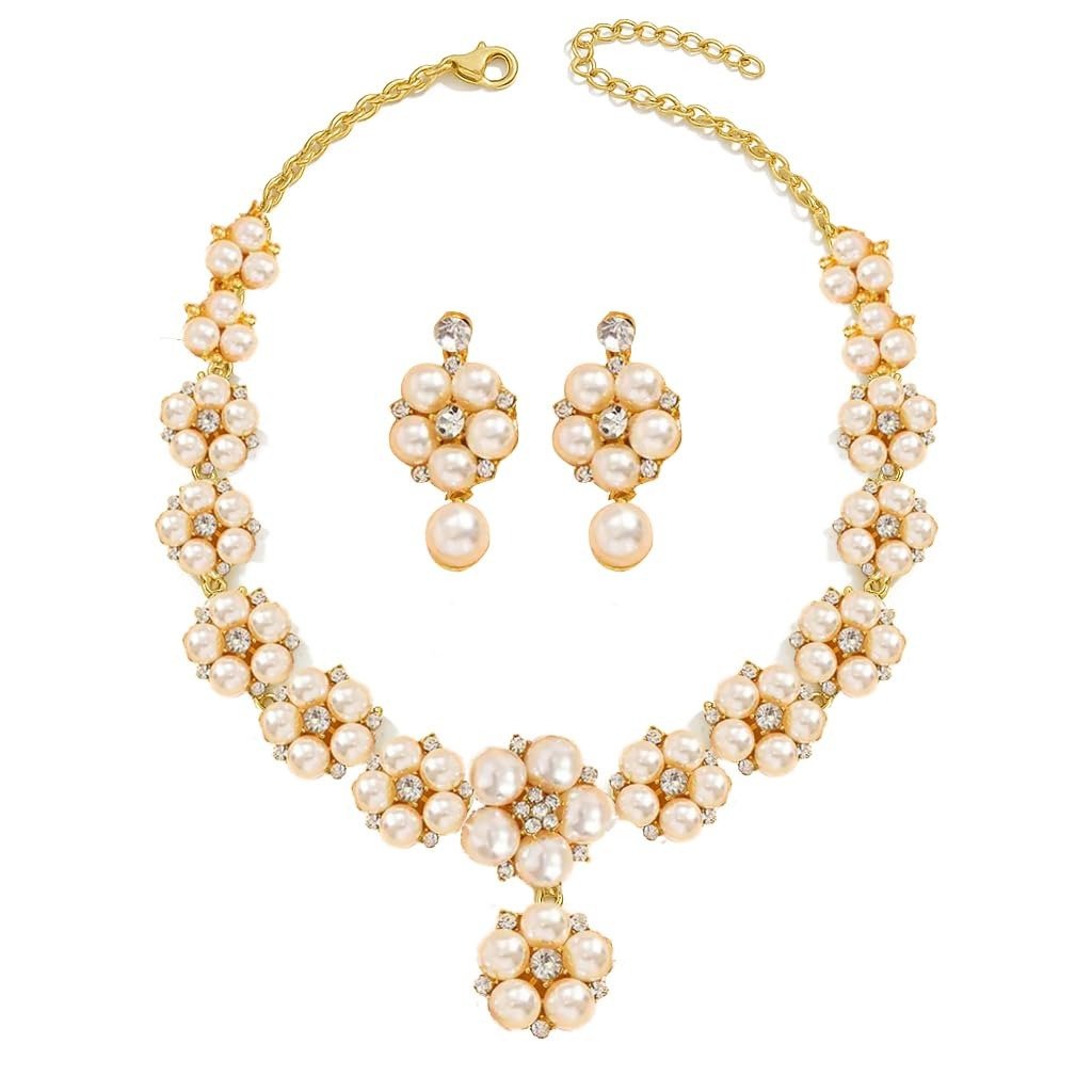 YouBella Gifts Stylish Latest Traditional Gold Plated Pearl Jwell Necklace Pendant Jewellery Set with Earrings for Girls and Women (YBNK_50626) (White) – Fast Shipping to USA & Canada