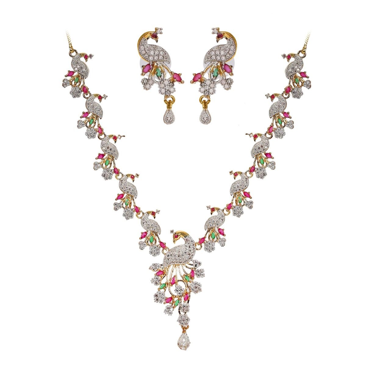 YouBella Jewellery American Diamond Peacock Style Necklace Jewellery Set for Women and Girls, Multi-Color, Medium (YBNK_50131) – Fast Shipping to USA & Canada