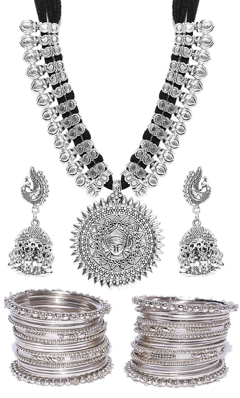 YouBella Jewellery Sets for Women Silver Plated Afghani Tribal Necklace Jewellery set with Earrings and Bangles Combo For Girls/Women – Fast Shipping to USA & Canada