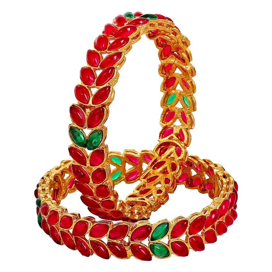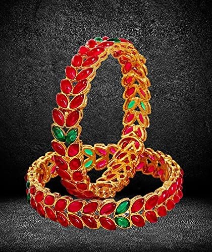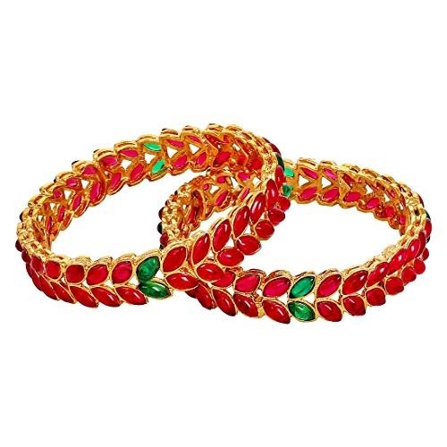 YouBella Jewellery Traditional Gold Plated Red Bracelet Bangles Set for Girls and Women – Fast Shipping to USA & Canada