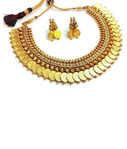 6 reviews for YouBella Pearl Traditional Temple Coin Necklace Set for Women – Fast Shipping to USA & Canada