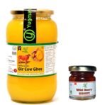Grass-fed Gir cow ghee with Bilona method and free raw honey.