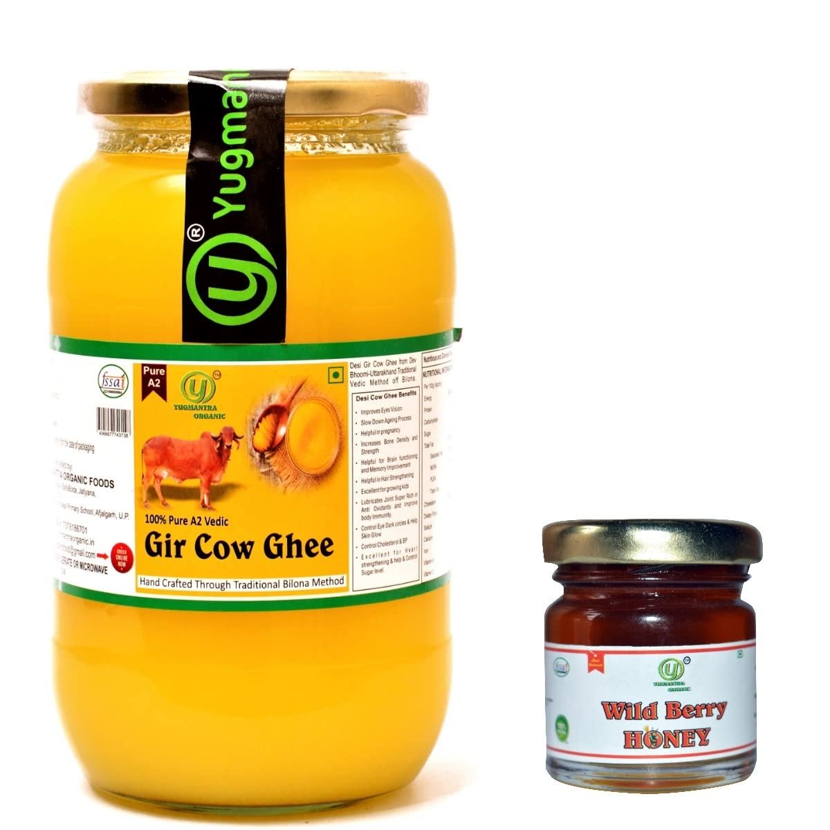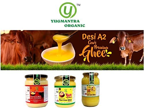 - Yugmantra Organic Cow Ghee is crafted from A2 milk sourced from the indigenous Gir cow of India, utilizing the age-old Bilona method. This ghee is entirely natural and pure, guaranteed to be free from pesticides and chemicals. The traditional Bilona process for producing Desi Ghee involves the following steps: milk is transformed into curd in clay pots, butter is extracted, and then the butter is gently heated to produce granulated yellow cow ghee. The result is a smooth, creamy texture accompanied by a rich, nutty flavor.