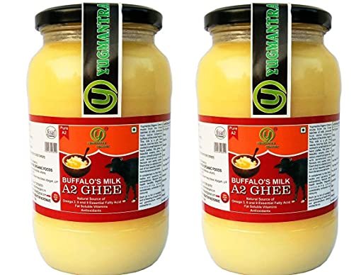 Our Buffalo Cow Ghee is produced using the traditional Vedic method of Bilona: we begin with boiled milk, convert it to curd, churn the curd in clay pots to extract butter, and then gently heat the butter to obtain granulated yellow Buffalo Cow Ghee. This A2 Buffalo Cow Ghee is rich in nutritious fatty acids, making it an ideal source of energy and vitality for vegetarians. It offers a wonderful balance of Omega-6 to Omega-3 fatty acids and linoleic acid, and is free from pesticides and chemicals. Regular consumption of Buffalo Cow Ghee promotes a healthy body and enhances overall vitality.