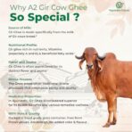 - >A2 GHEE HEALTH ADVANTAGES A2: Ghee possesses a completely granular (dander) texture and exhibits a golden yellow hue. The nutritional composition, color, flavor, and physical characteristics of A2 ghee can fluctuate between batches, influenced by seasonal changes and the types of feed consumed. The yellow tint of ghee from Gir cows is attributed to the presence of beta-carotene within it.