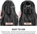 - Crafted from premium synthetic fibers, our ponytail extension delivers a natural look and a luxurious touch. Its silky texture resists tangling, making it easy to comb and maintain. Suitable for a range of hair lengths, this adaptable extension clips securely into both fine and thick hair. Furthermore, it can be trimmed, washed, and reused, ensuring lasting durability and making it ideal for extended wear.