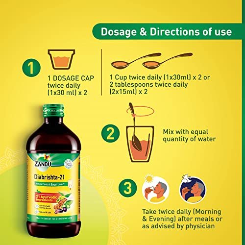 Zandu Diabrishta – 21 is formulated with a potent blend of 21 Ayurvedic ingredients recognized for their ability to help regulate blood sugar levels. This product is clinically validated and should be used in conjunction with prescribed medications.