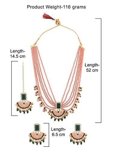 ZAVERI PEARLS Peach & Green Multistrands Bridal Necklace Earring Maangtikka & Ring Set For Women-ZPFK12626 – Fast Shipping to USA & Canada