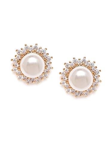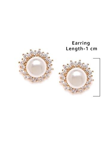 Zaveri Pearls Sparkling Cubic Zirconia & Pearl Stud Earring For Women-ZPFK9458 – Fast Shipping to USA & Canada