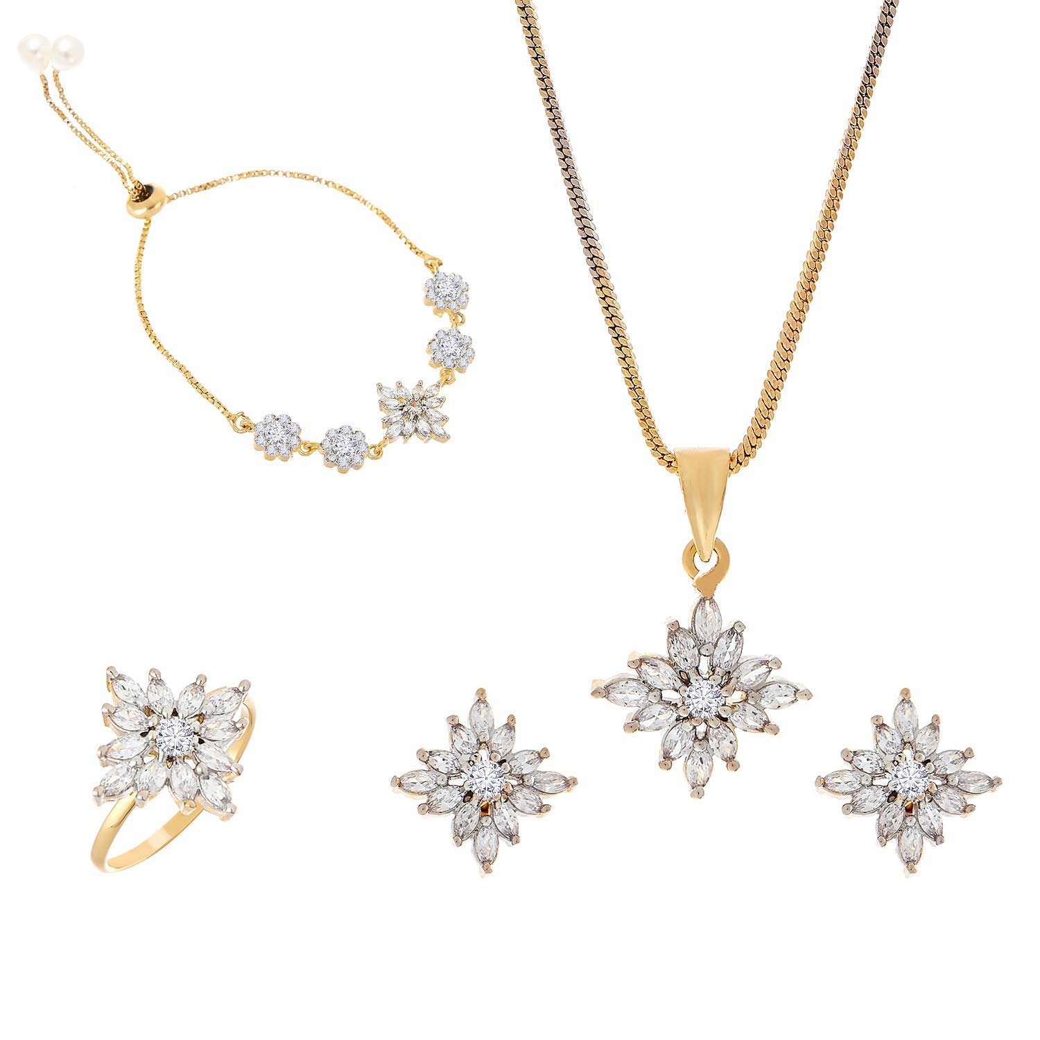 ZENEME Jewellery Set for Women American Diamond Necklace Set with Earrings, Bracelet and Ring Jewellery for Girls and Women – Fast Shipping to USA & Canada
