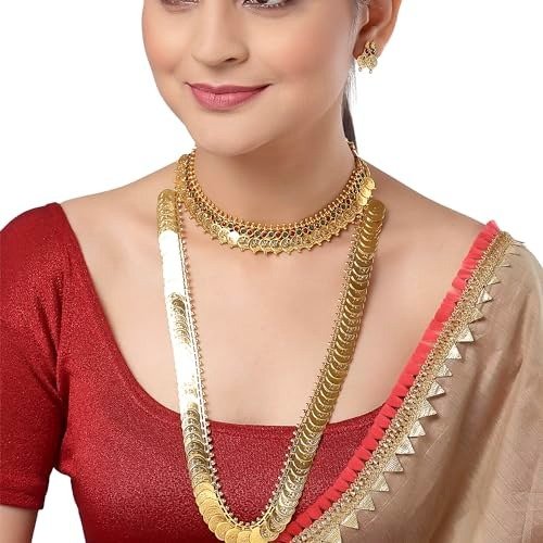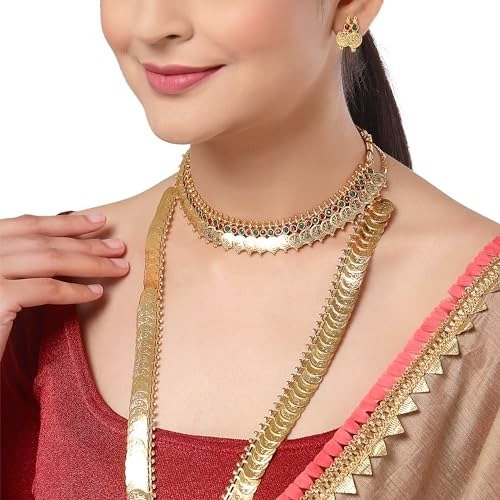 7 reviews for ZENEME Jewellery Set Gold Plated Traditional Temple Coin Maharani Necklace Set & Red Green Temple Coin Necklace Set With Earring Jewellery For Women and Girls – Fast Shipping to USA & Canada