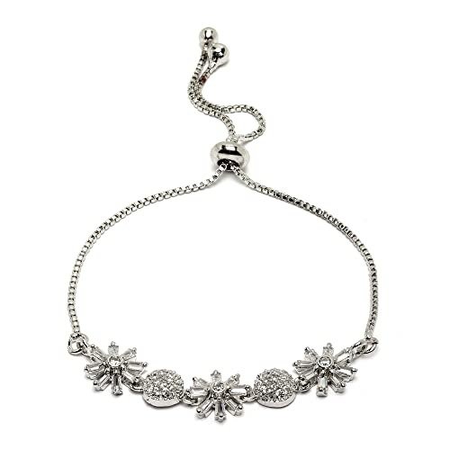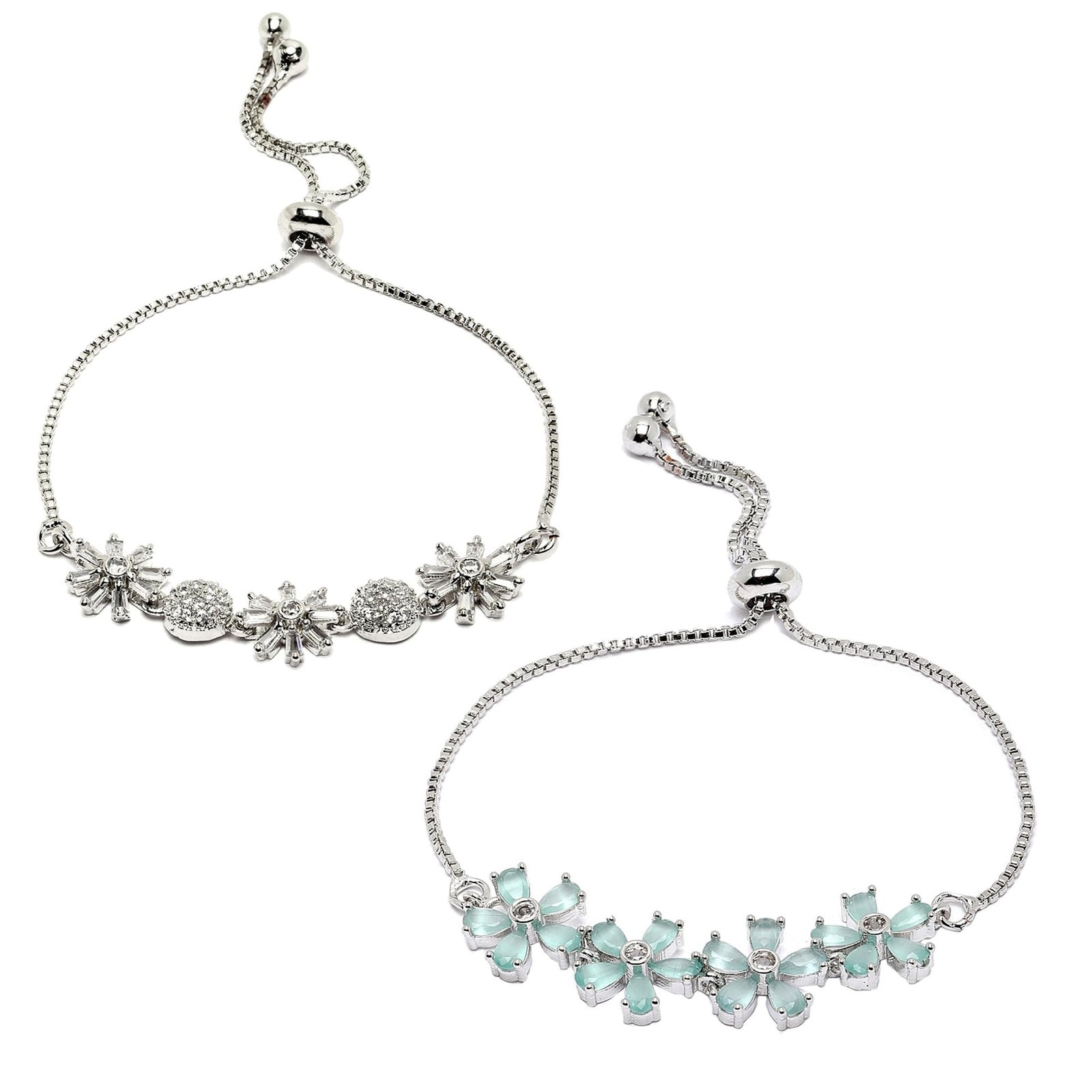 ZENEME Rhodium Plated American Diamond Studded Silver Plated Adjustable Chain Set Of 2 Bracelet For Women & Gift For Girls – Fast Shipping to USA & Canada
