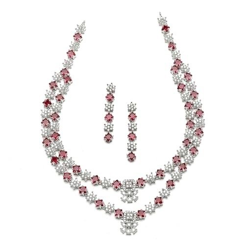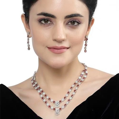 ZENEME Rhodium-Plated American Diamond Studded Star Shaped Layered Necklace With Earrings Jewellery Set For Girls and Women – Fast Shipping to USA & Canada