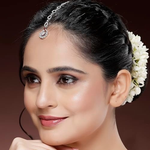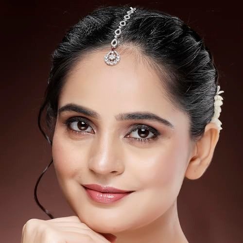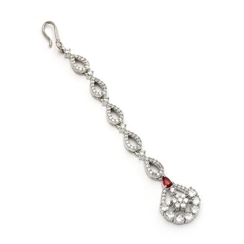 - High-Quality Composition: This Rhodium-Plated Zeneme Silver-Toned Maang Tikka features superior metal and American Diamond crystals.