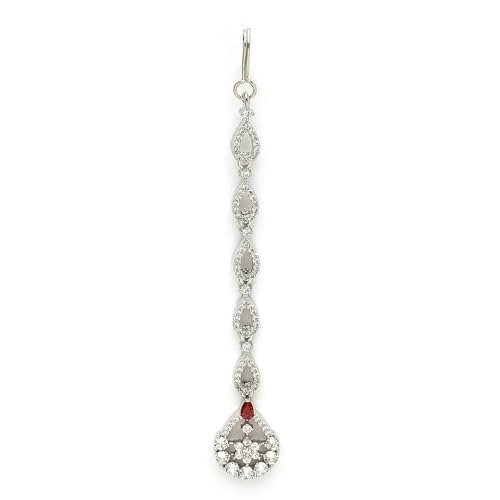 Zeneme Rhodium Plated Silver Toned Cascaded American Diamond Crystal Mangtikka For Women & Gifts For Girls – Fast Shipping to USA & Canada