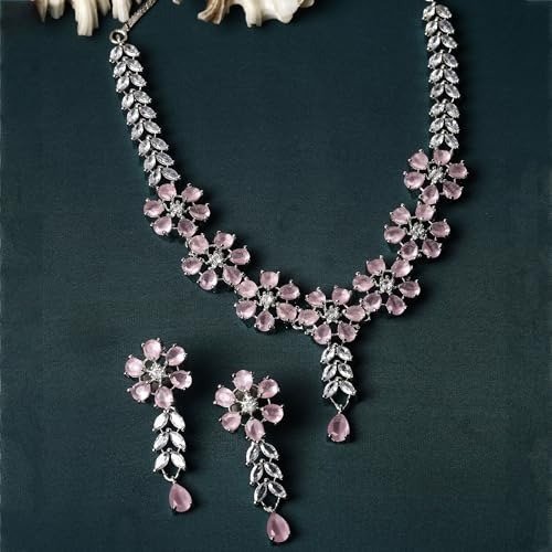 ZENEME Rhodium-Plated Silver Toned Star Shaped American Diamond Studded Necklace Earrings Jewellery Set for Girls and Women – Fast Shipping to USA & Canada