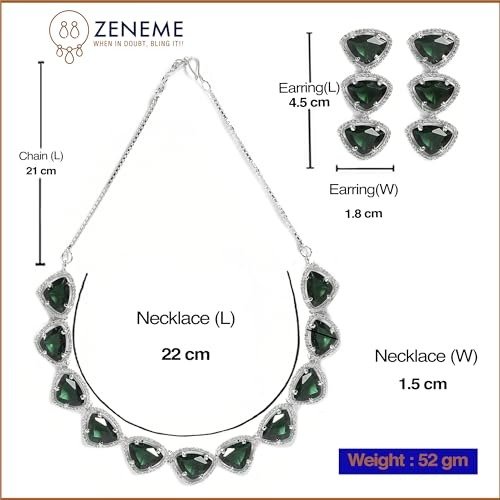 ZENEME Rhodium Plated Silver Toned Triangular Shaped American Diamond Studded Jewellery Set For Women and Girl – Fast Shipping to USA & Canada