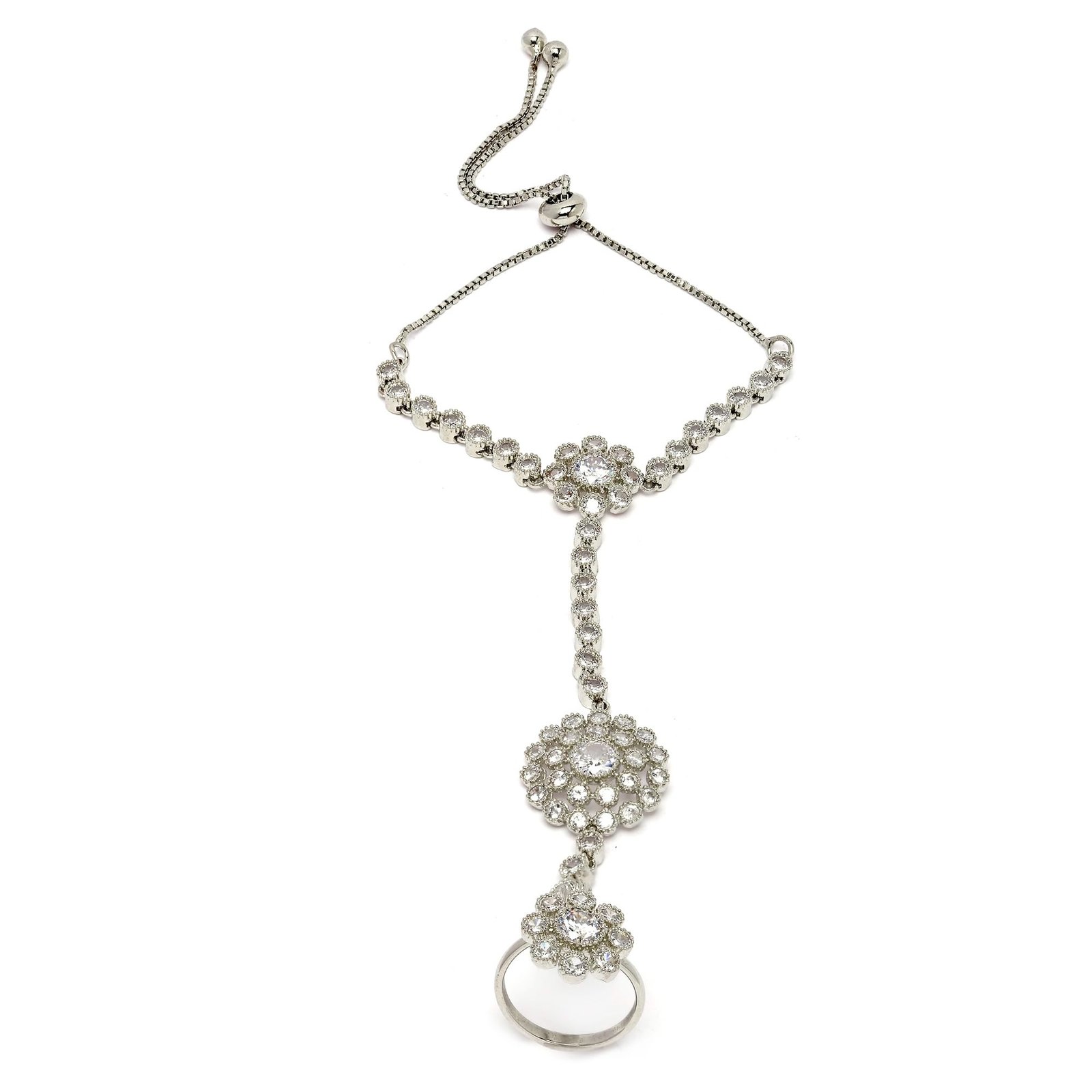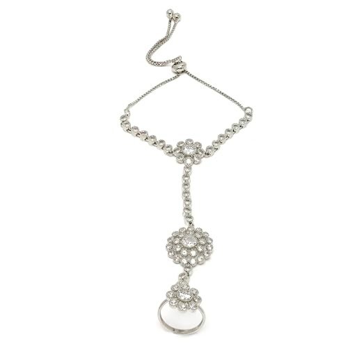 ZENEME Rose Gold-Plated White American Diamond Studded Flower Graceful Hand Chain Ring Bracelet For Girls and Women – Fast Shipping to USA & Canada