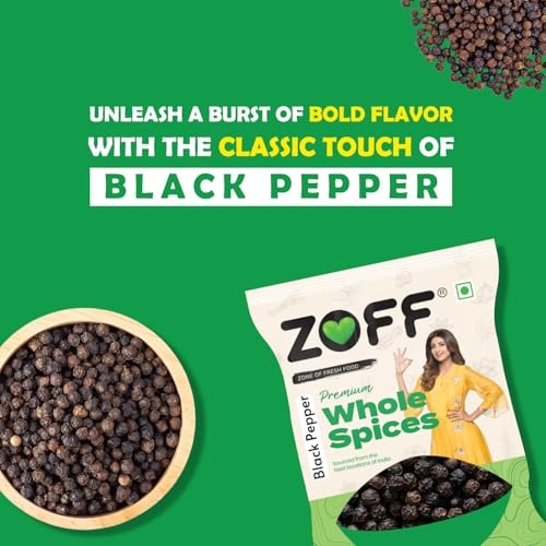 - Premium Quality Pepper: Sourced from the finest farms in India, Zoff Black Pepper (Kali Mirch) brings you bold flavor, a rich natural aroma, and exceptional quality. Each peppercorn is hand-picked and carefully processed to ensure freshness. Whether you?re cooking everyday meals or preparing gourmet dishes, it adds a distinctive, exquisite touch to your food.