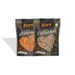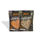 - Enjoy a premium selection with the Zoff Dry Fruits Combo, featuring two 250g packs?one of raw almonds and one of roasted, salted pistachios. It?s the perfect mix for anyone who loves a delicious variety of high-quality nuts.