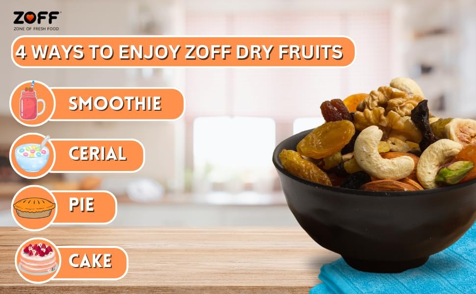 - Zoff carefully selects and packages these premium dry fruits to make sure they reach you as fresh as possible, preserving their quality and flavor.