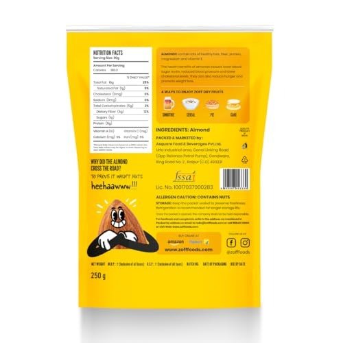 - Pure & Fresh: ZOFF Almonds are completely free from additives, preservatives, and artificial flavors?just pure, natural goodness. Every batch is carefully packed in airtight packaging to lock in freshness, flavor, and crunch.